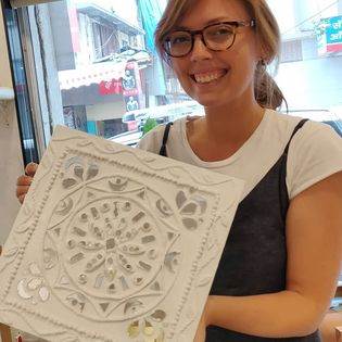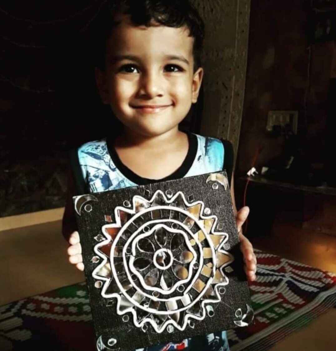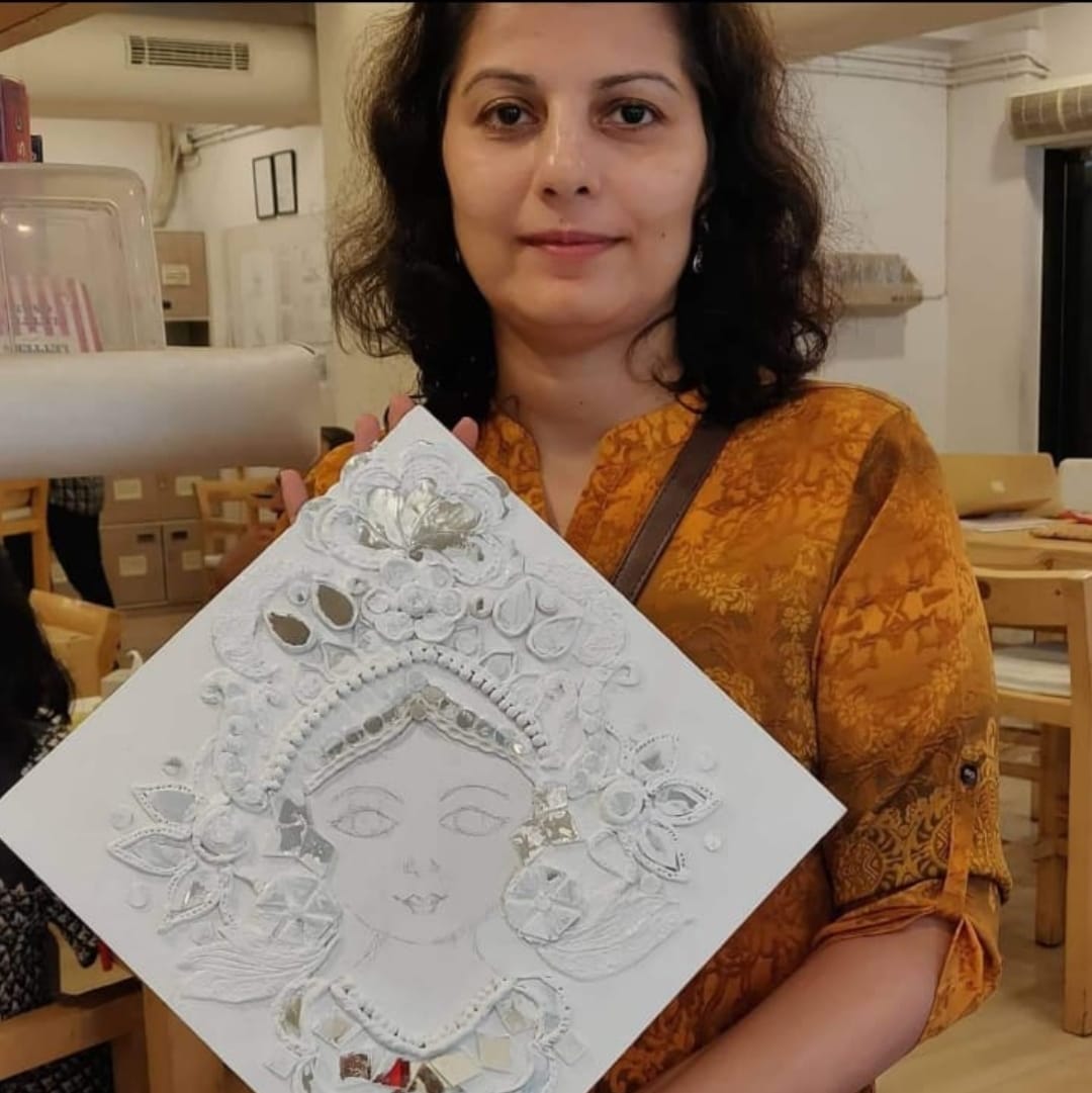 Using clay, chips of glasses and glue let’s create the traditional art form of kutch