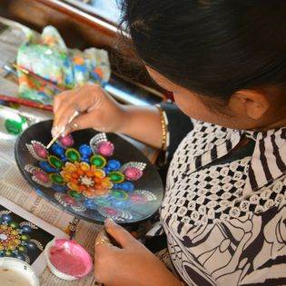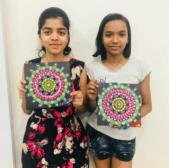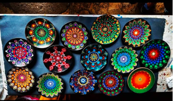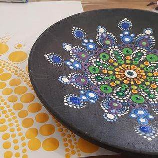 Using dotting tools create an meditative artwork with dot mandala painting.