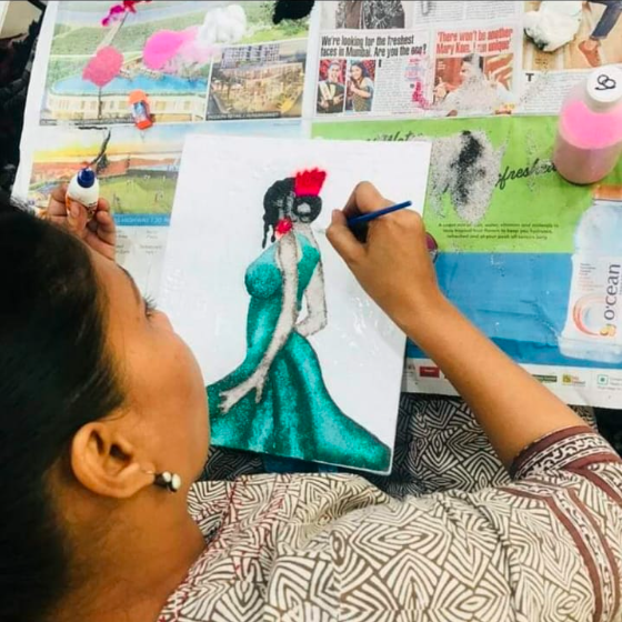 Paint the Canvas using colourful sand.. yes sand not colours.